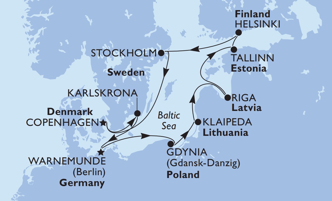 Cijena uključuje: prijevoz zrakoplovom na relaciji Zagreb – Kopenhagen – Zagreb u ekonomskoj klasi, organizirani transferi zračna luka – luka ukrcaja – luka iskrcaja – zračna luka, panoramski razgled Kopenhagena, smještaj u odabranoj kabini tijekom krstarenja (tuš/WC, klima uređaj, sef, sušilo za kosu, TV), 12-dnevno krstarenje brodom MSC Magnifica prema programu, prošireni puni pansion na brodu (doručak, ručak, večera, poslijepodnevni i večernji snack), vođene šetnje Karlskrone (Švedska), Warnemunde (Njemačka), Klaipeda (Litva) i Tallin (Estonija), animacija, zabavni večernji program u salonima i barovima sa živom glazbom, predstave u kazalištu, sportske aktivnosti, korištenje fitness dvorane, bazena, ležaljki, ukrcaj i iskrcaj prtljage, pratnja iskusnog pratitelja putovanja, trošak organizacije i jamčevinu.