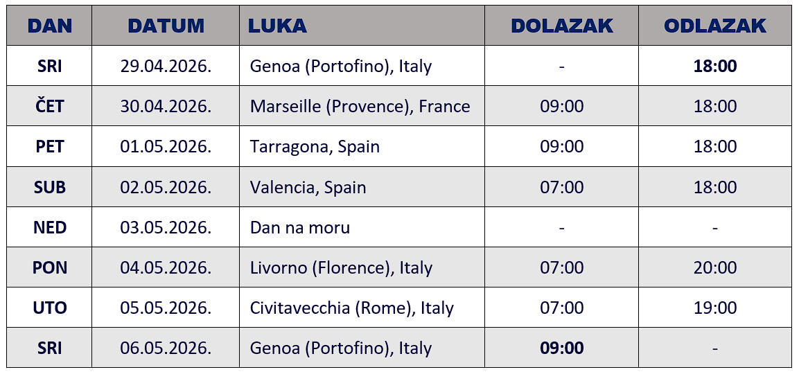 Raspored krstarenja je podložan promjenama koje su u vezi s trenutnom situacijom