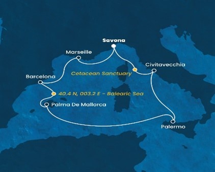 krstarenje brodom COSTA TOSCANA, smještaj u odabranoj kabini na brodu (tuš/WC, klima uređaj, sef, sušilo za kosu, TV), voditelja putovanja tijekom krstarenja pri minimum 30 plaćenih osoba, besplatan izlet Marseilles: šetnja gradom (nije uključen transfer od luke do centra grada), prošireni puni pansion na brodu (piće nije uključeno), animacija, zabavni večernji program u salonima i barovima sa živom glazbom, predstave u kazalištu, casino, disco, sportske aktivnosti, korištenje fitnessa, bazena, ležaljki, u skladu s epidemiološkim mjerama, organizaciju i pripremu putovanja.